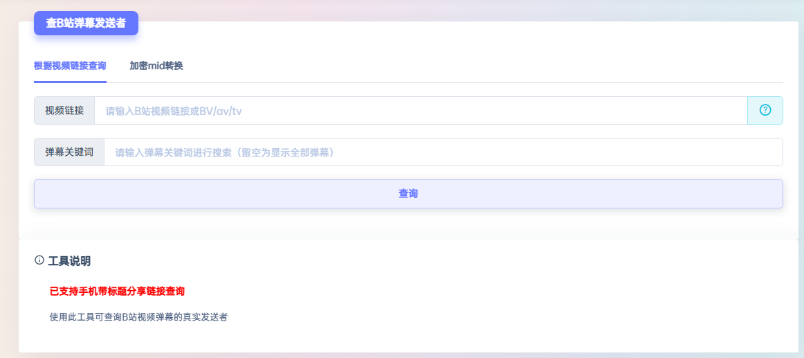只需轻松复制 B 站视频链接(支持网页版完整链接、简化链接、手机 APP 分享链接以及带标题的分享链接),粘贴至查询工具中并点击查询,便能迅速获取该视频的全部历史弹幕。无论是时长超长的深度内容,还是弹幕如雪花般密集的热门视频,工具都能稳定且高效地完成弹幕抓取,突破时间与数量的限制,为用户呈现最完整的弹幕景观 。